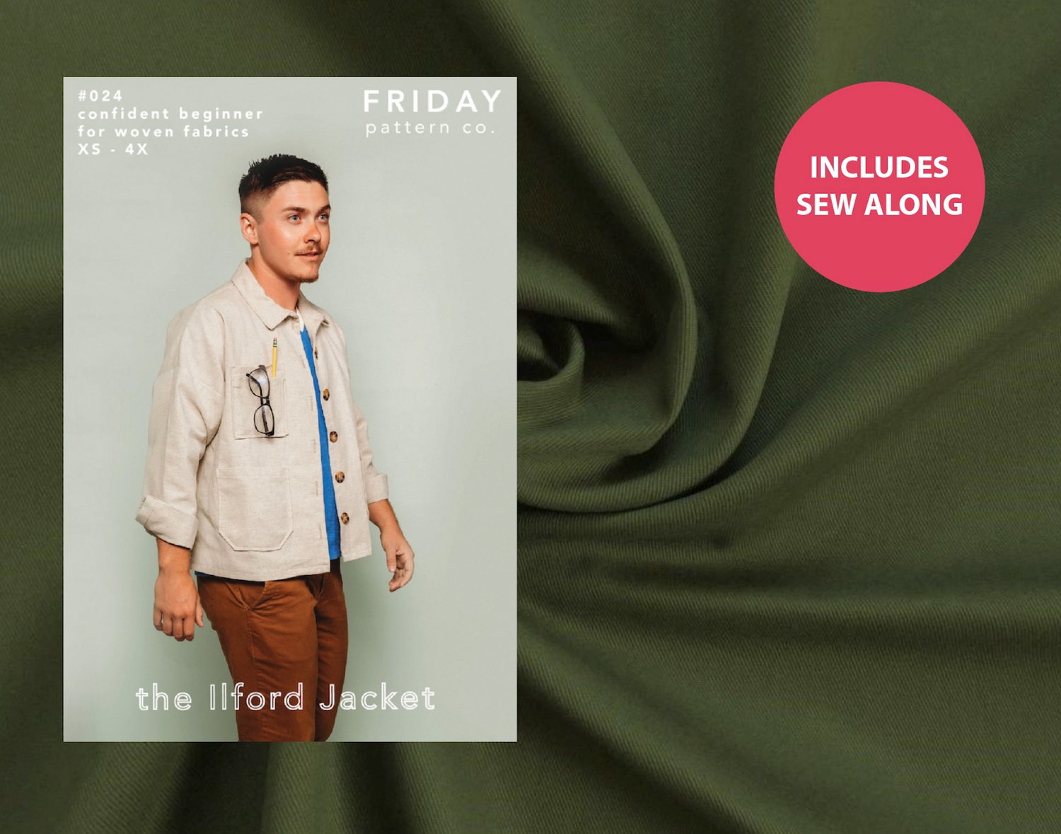 Sew along with me and make the Ilford Jacket by Friday Pattern Company. this easy to sew, unisex jacket includes tons of customisable styling options.